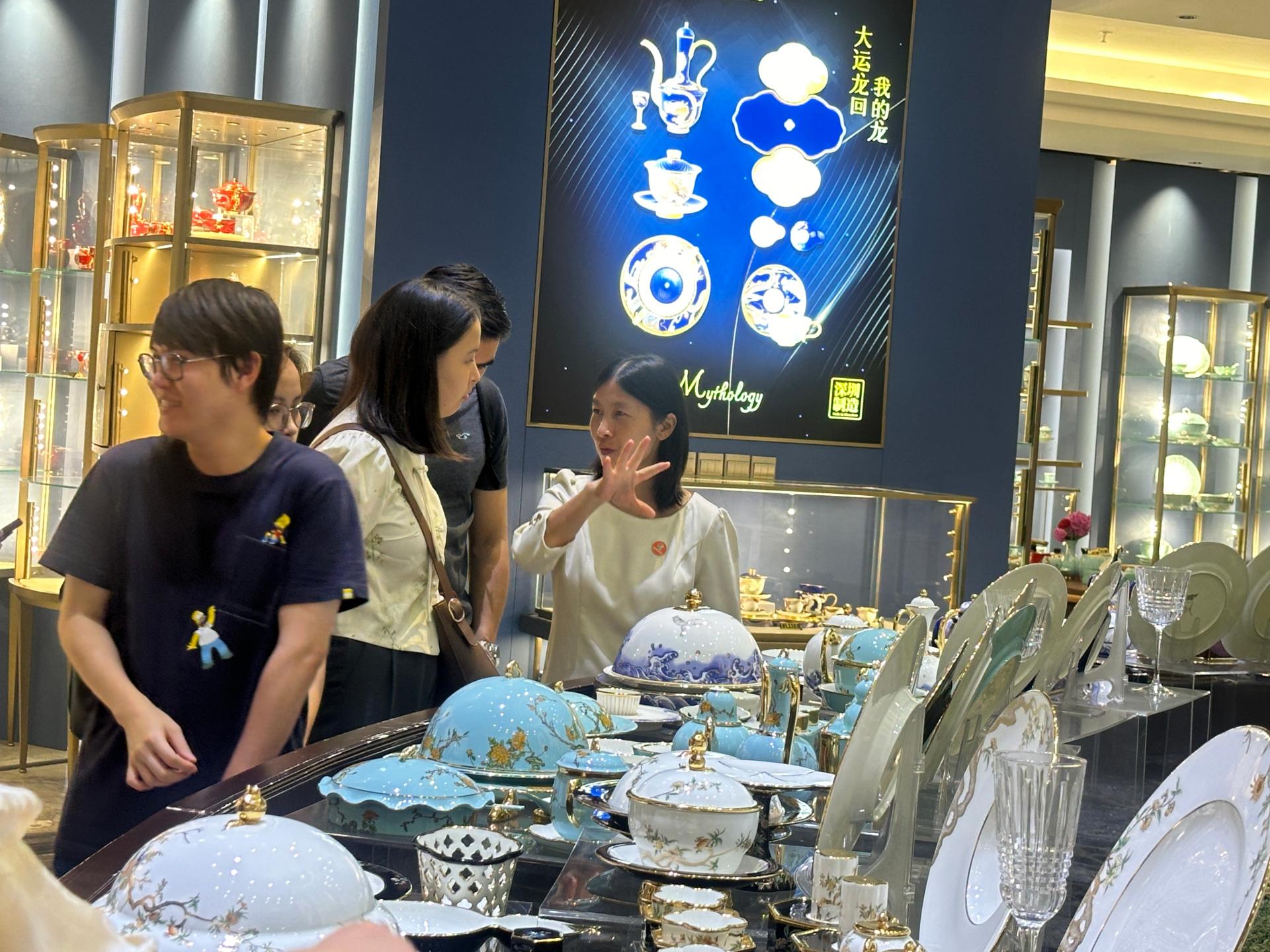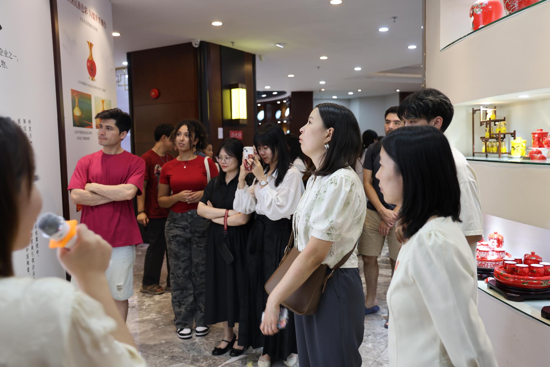 Then, the teachers and students came to the headquarter of Auratic. With its exquisite craftsmanship and design, China Yong feng yuan has successively contracted a number of China's home diplomatic banquets for porcelain, including important international events such as G20 Summit, BRICS Summit and Boao Forum for Asia. Through this walking tour, the teachers and students of the College of International Exchange of Shenzhen University were also able to closely appreciate the porcelain used for state banquets, which represents the model of flourishing Chinese ceramics, and experience the etiquette style of a large country and the beauty of ceramic design and manufacturing.