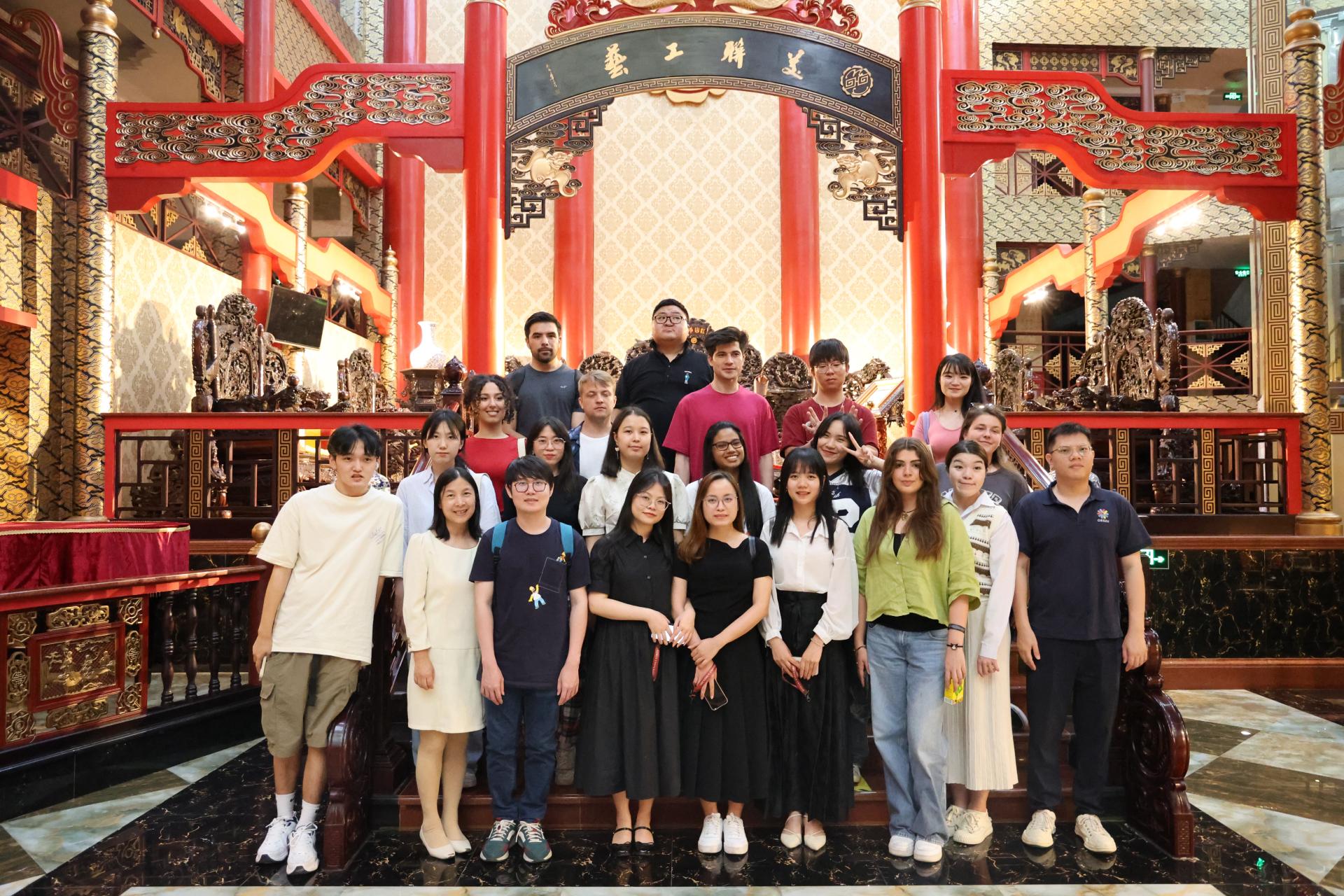 After watching the Chinese classics of porcelain, the teachers and students went to the Shenzhen Mei Luen Rosewood Art Museum. With the design concept of "adhering to the unity of classical architectural style and rosewood display", the Shenzhen Mei Luen Rosewood Art Museum pays attention to the inheritance and development of classical architectural art in the appearance of the museum, with as many as 3,800 exhibits, and all exhibits exhibited in the museum have the characteristics of education, research, appreciation, novelty and rarity. It not only inherits and carries forward traditional Chinese culture, but also disseminates classical mahogany cultural knowledge to the public and improves people's cognition of mahogany culture and Chinese traditional culture. At the same time, it also adheres to the belief of promoting international cultural exchanges, realizing the export and import of culture, and implementing the policy of the Central Government's "Belt and Road".