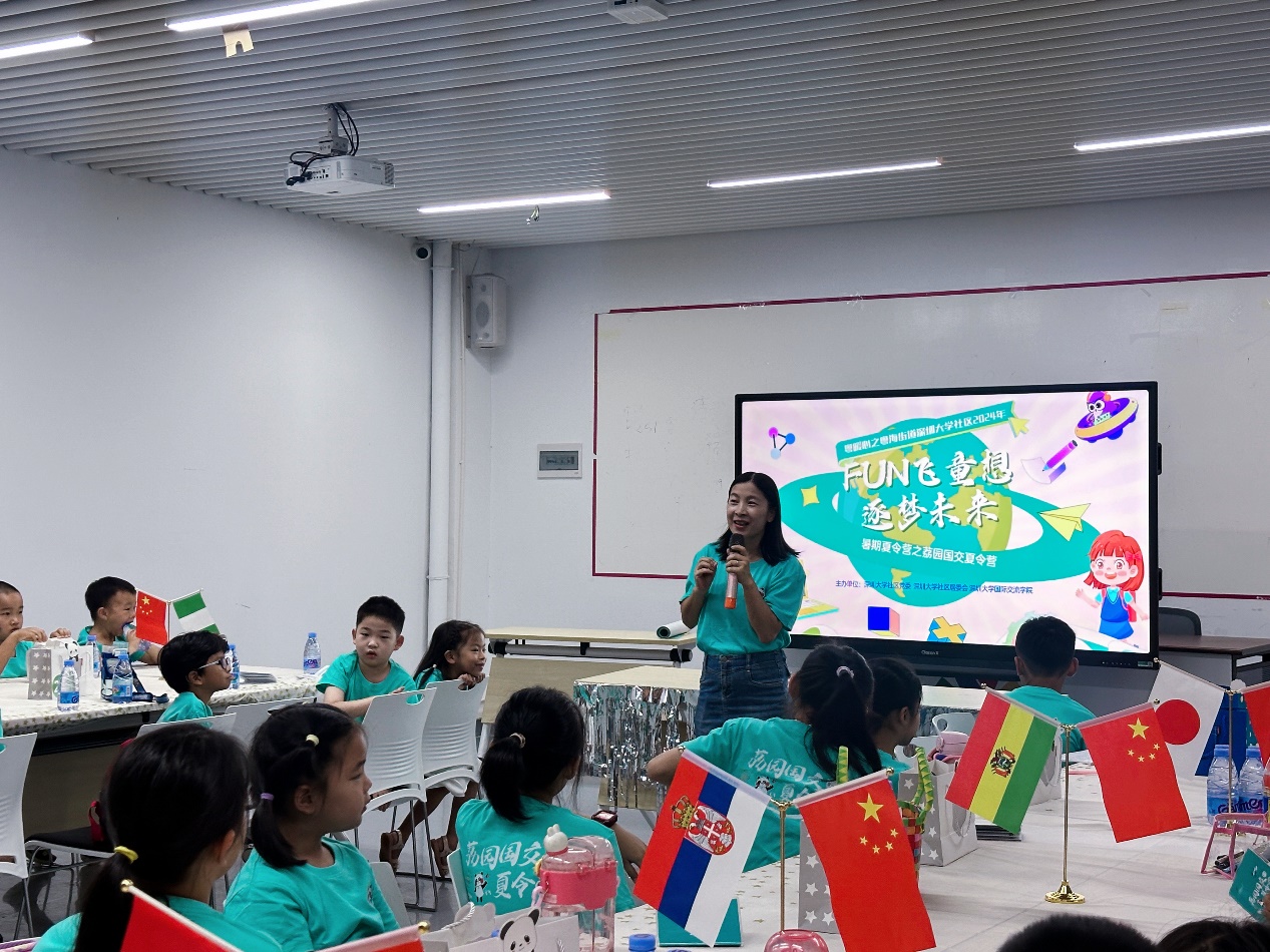 With an enthusiastic opening by the host, the opening ceremony of the camp was officially kicked off. The host expressed a warm welcome to the children and showed them a summer camp schedule full of fun and challenges. Qin Qing, Deputy Secretary of the General Party Branch of CIESZU welcomed the children with warm and inspiring words, focusing on “one welcome, two thanks, three hopes, and four expectations”, expressed her gratitude to the staff and children who participated in the summer camp and conveyed the expectations and blessings of the college to the children, hoping that they can not only gain knowledge but also develop international perspective and cross-cultural communication ability, and harvest a rewarding, happy and memorable journey.