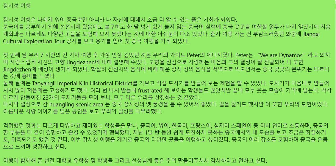 The trip to Jingdezhen was an exploration of ceramic art. In Jingdezhen, students got to experience the art of ceramic making firsthand and felt the profound cultural heritage of Chinese porcelain. The ceramic art in Jingdezhen, with its exquisite craftsmanship and unique aesthetics, allowed students to experience a genuine cultural immersion as they created their own ceramic works.