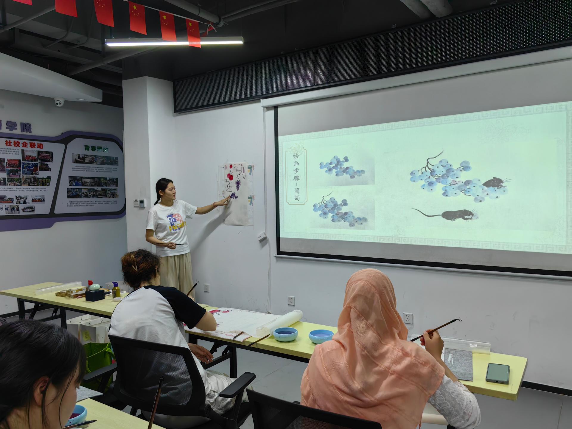 At the beginning of the activity, the Chinese painting teacher first introduced the basic knowledge and skills of Chinese painting to the international students, including the holding method of the brush, the allocation of ink color and the basic steps of painting. Afterwards, the teacher explained in detail the drawing skills of lychees and grapes, how to use lines to outline the shape of the fruit, and how to express the fullness and crystal clarity of the fruit through color.
