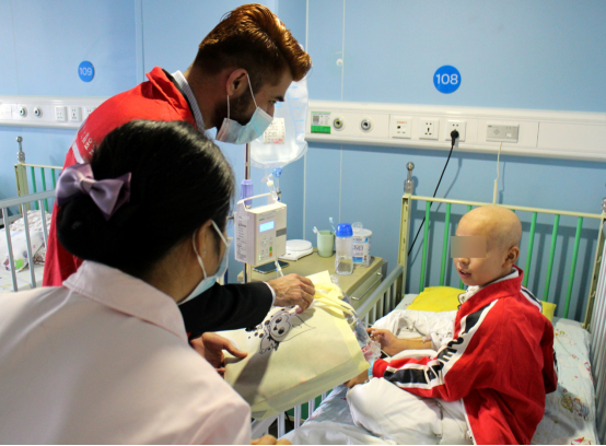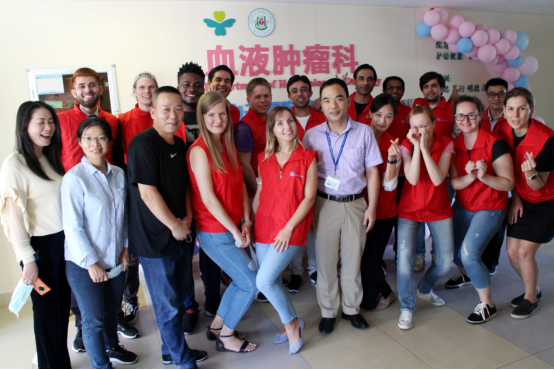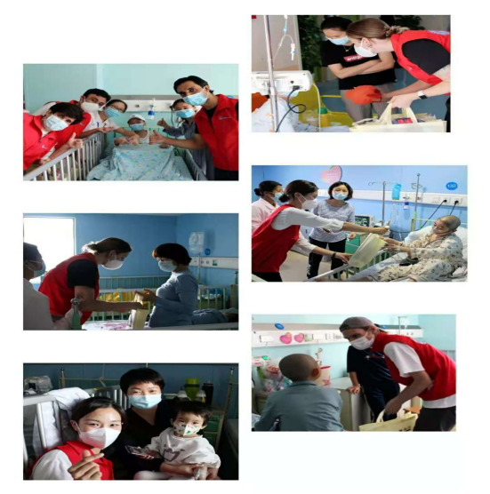 在血液科劉四喜主任的帶領下,外國留學生志愿者們先后來到了血液科病區,為百余名患兒送去禮物。