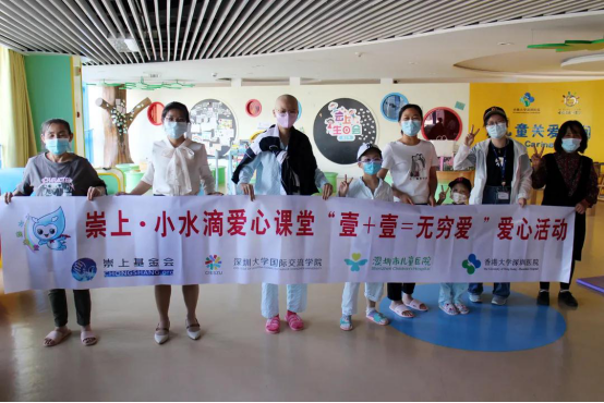 深圳大學國際交流學院與崇上基金會合作舉辦“小水滴愛心課堂“壹+壹=無窮愛”的送溫暖活動,自2019年11月11日開展以來,一直得到了社會的廣泛好評。社會上越來越多的愛心人士參與進來,更多人了解血液病患兒、罕見骨病患兒等大病兒童的困境,也在近距離地接觸中認識他們充滿能量、活力的另一面!這一系列的活動由深圳大學國際交流學院黨員黃維維老師熱心組織。