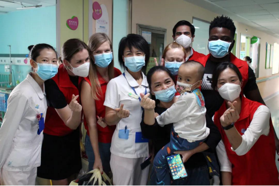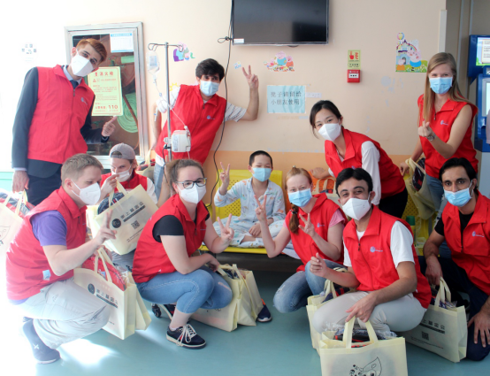 11月12日下午,深圳大學國際交流學院的留學生與崇上基金會的工作人員馬不停蹄地趕到深圳兒童醫院,醫院血液科病房立刻充滿了歡聲笑語。來自波蘭、土庫曼斯坦、俄羅斯、巴基斯坦、克羅地亞、多哥、德國、捷克、墨西哥、烏克蘭等國家的15位深圳大學國際交流學院外國留學生,化身志愿者,來到這里進行陪護服務。