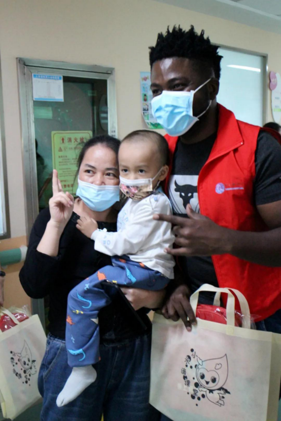 多哥的ABIDONOU KOFFIVI KOBOE因為黝黑的皮膚和陽光般燦爛的笑容成了全場大明星,他一走進病房就緊緊地吸引住了孩子們的目光,有的孩子因為好奇成了他的“跟屁蟲”。他說,很高興可以為孩子們加油打氣,傳遞愛心,這將是他在中國最美好的一份回憶。