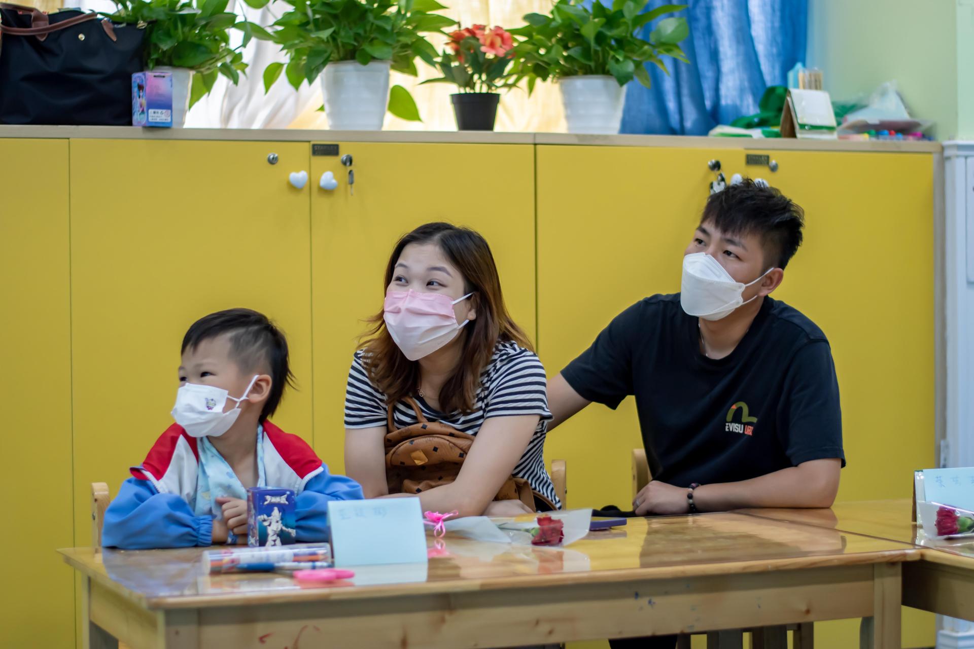 課程的最后部分Dave進行現場法語教學,當孩子們用法語“Mercimaman”、“Mercipapa”向身邊的爸爸媽媽深情地表達愛意時,家長們嘴角上揚之間不覺已眼圈微紅,現場氣氛溫馨而美好。