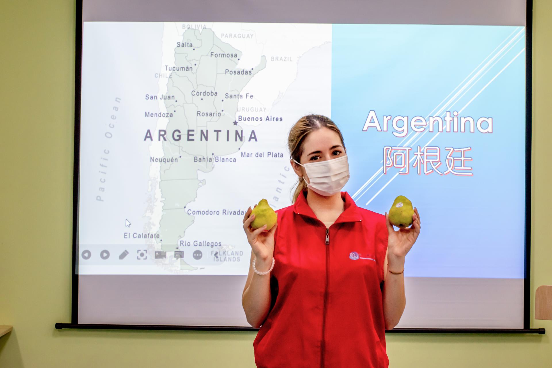 活動組織方還特意精心準備了阿根廷的特產(chǎn)——阿根廷帕克梨,大家品嘗著香甜可口的異國水果,課堂在其樂融融的氛圍中結(jié)束。