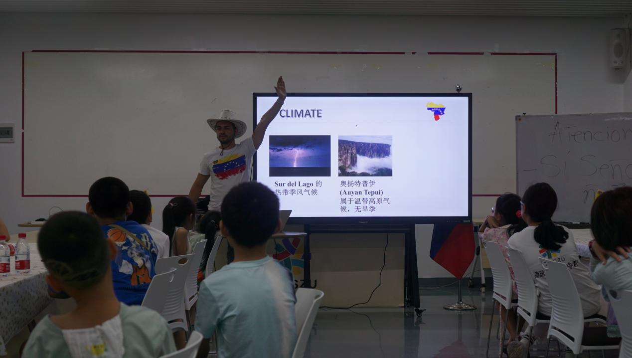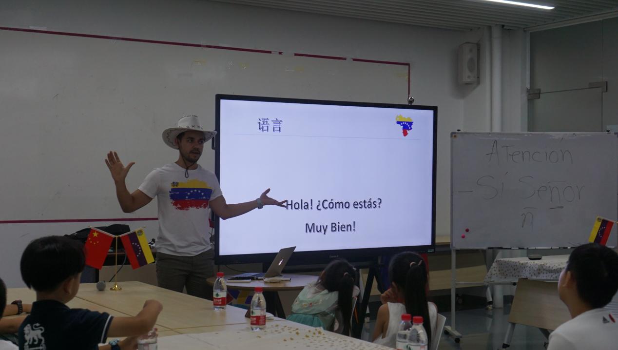 熱情活潑的委內瑞拉約翰老師(VARGAS QUERALES JHON FRANK)用他詼諧幽默的話語,生動形象的肢體動作與豐富的神態表達,令小朋友們在陣陣歡笑聲中熟悉了委內瑞拉這個充滿了神秘色彩的國度。