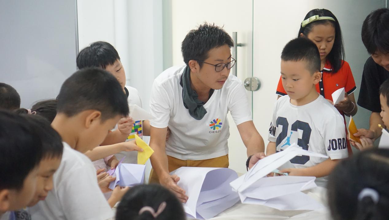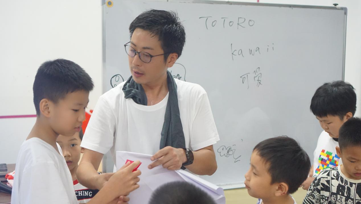 日本的伊藤行輝老師(ITO KOKI)用他簡單生動的肢體語言,帶領小朋友踏上了通往精彩日本文化的認識之旅。不僅是飲食、習俗、卡通大家族的成員們,他還介紹了日本折紙文化。小朋友學習千紙鶴、青蛙,不亦樂乎。