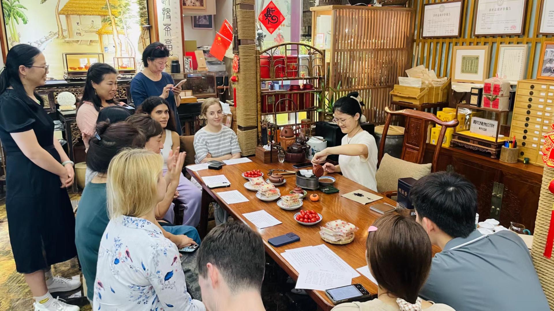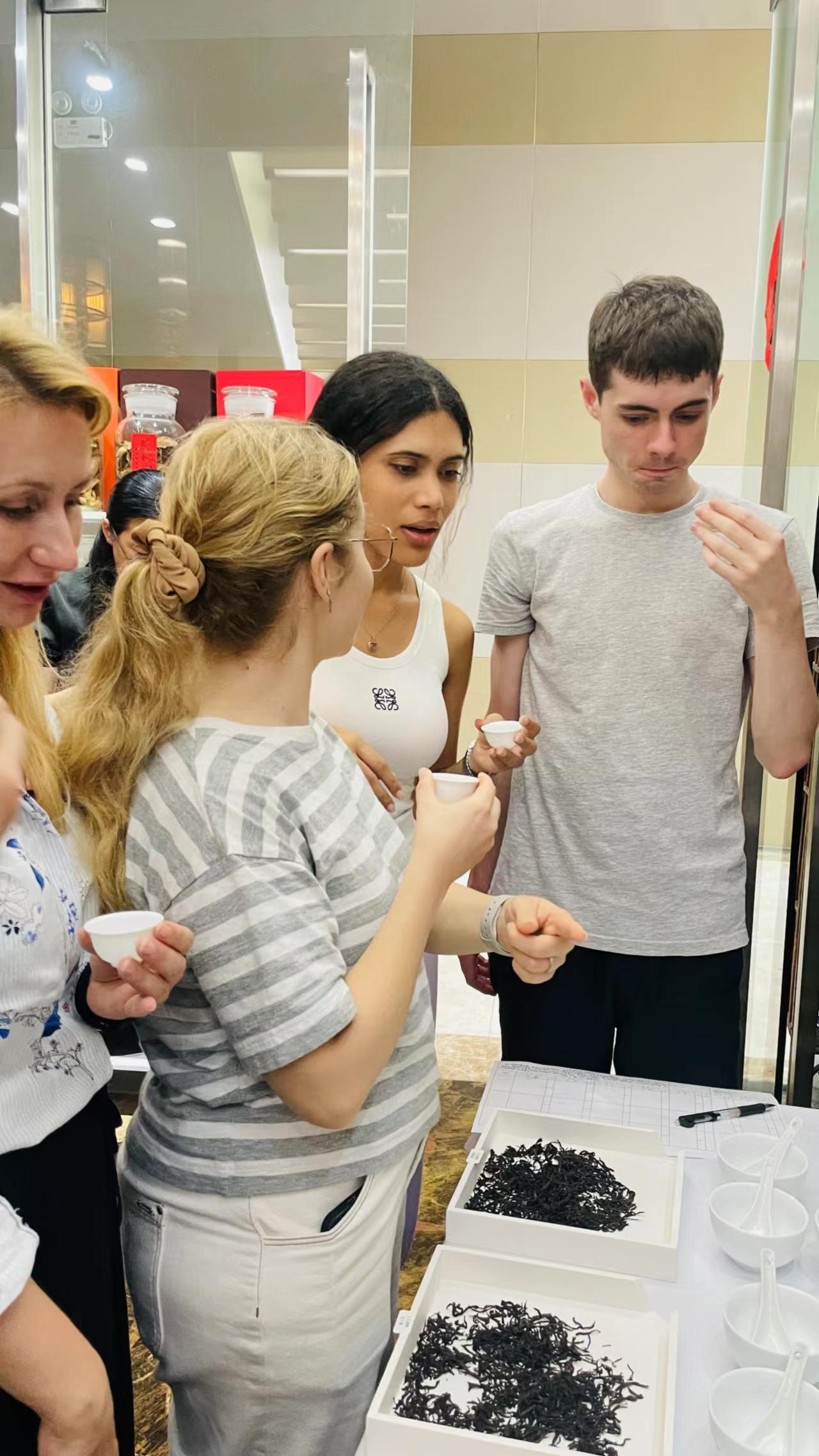 為了加強(qiáng)中外文化溝通交流,深圳大學(xué)國際交流學(xué)院選擇了以中國茶文化為橋梁,讓來華留學(xué)生通過茶來了解中國文化,深度了解中國。同時,也希望他們做好中國茶文化的傳播者,講好中國茶文化,讓中國茶文化走向世界。為此,深圳大學(xué)國際交流學(xué)院將《中國茶文化》的課堂擴(kuò)展至教室之外,讓學(xué)生有機(jī)會對中國茶、中國茶文化有著更豐富、更立體的了解。為此,深圳大學(xué)國際交流學(xué)院聯(lián)合深圳市閑茶隱文化傳播有限公司成為中國茶文化實(shí)踐基地,讓來華留學(xué)生近距離感受中極具中國特色的潮汕工夫茶文化,深入了解廣東烏龍茶中香水的鳳凰單叢。