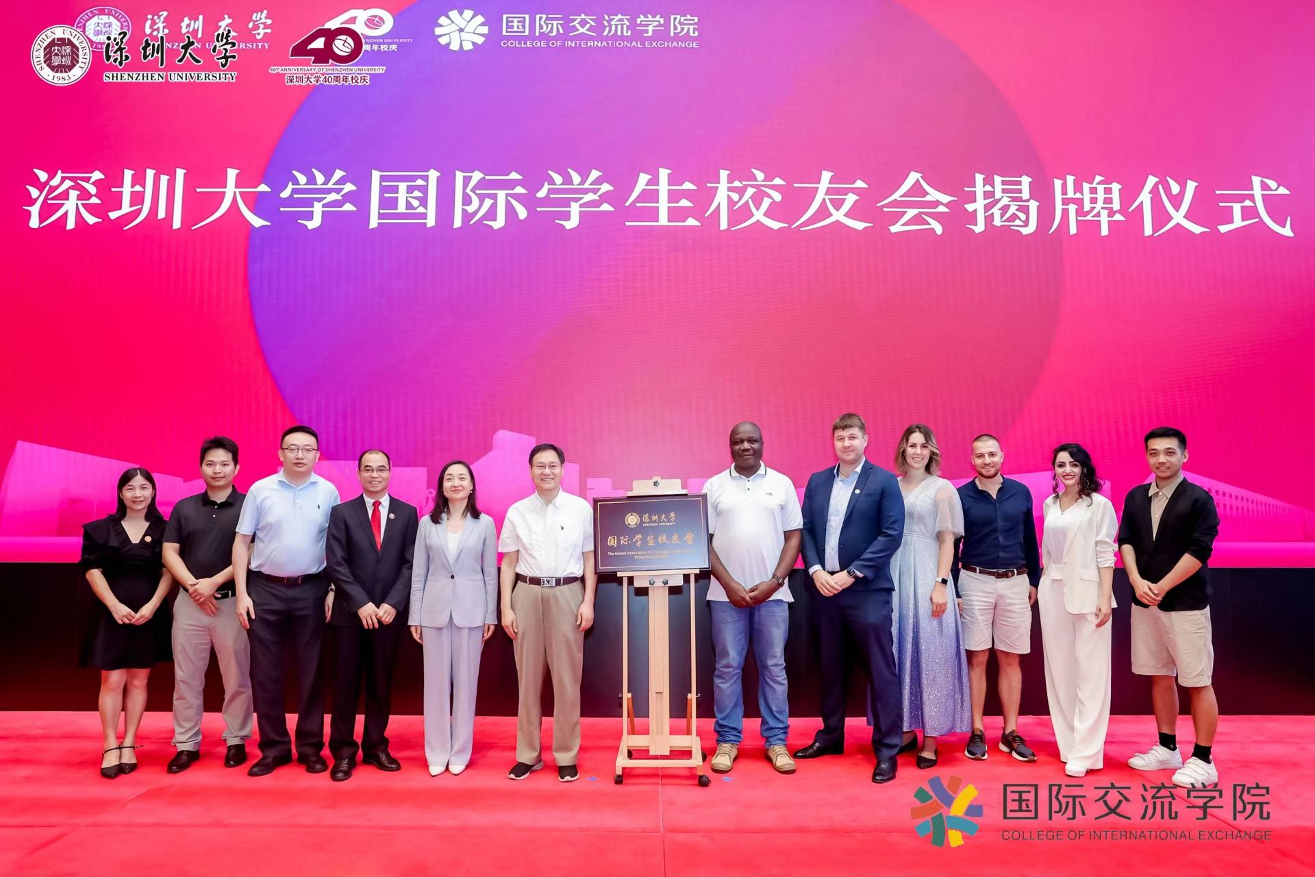 圖為深圳大學國際學生校友會揭牌儀式合影