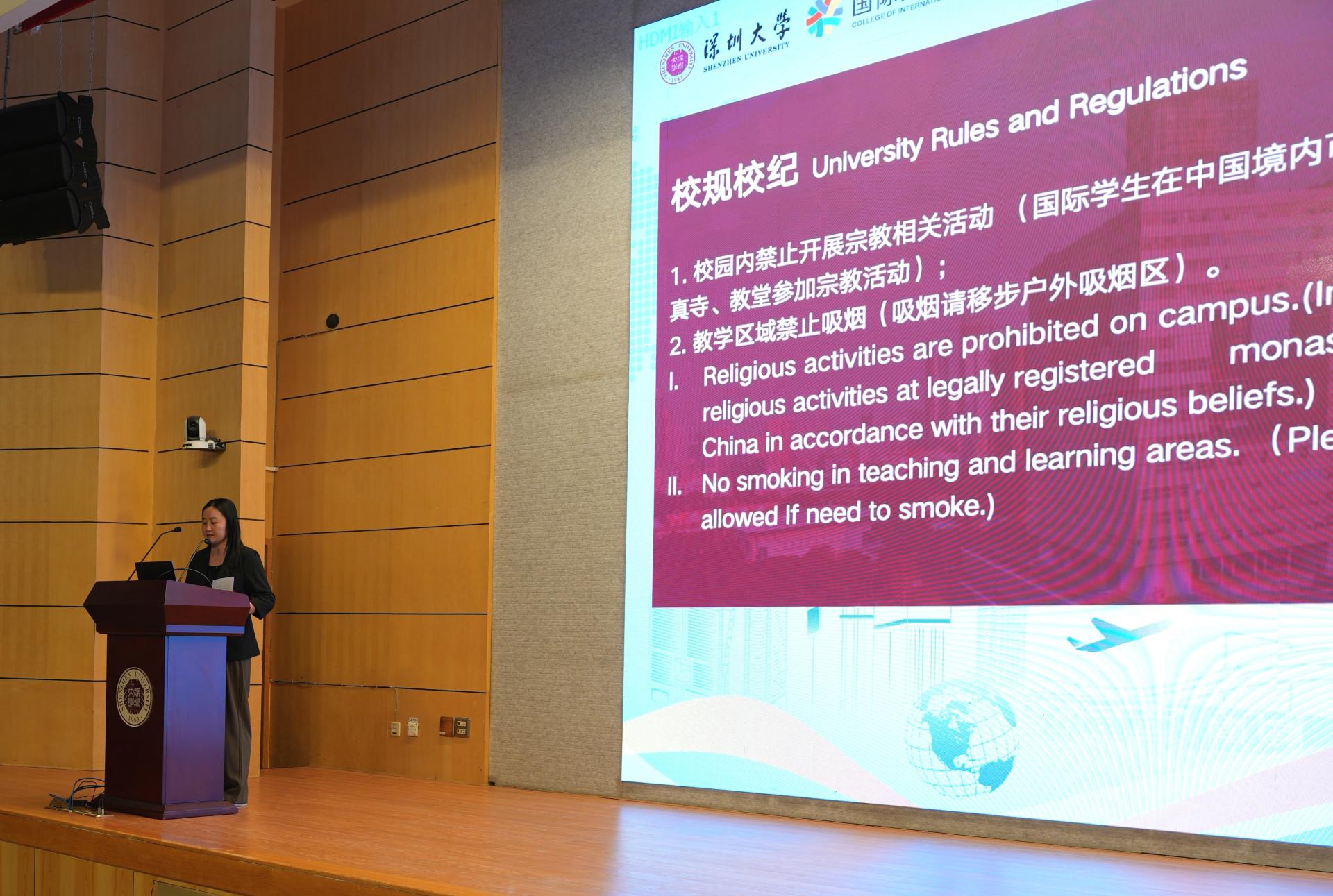 開學典禮的入學教育環節,旨在幫助留學生們更好地了解深圳這座城市、了解深圳大學的歷史、文化與學術氛圍,熟悉學校的各項規章制度以及在中國生活的基本規范與注意事項。通過詳盡的講解與指導,學院希望為學生們提供清晰的生活與學習指引,幫助他們更快地適應新環境,融入校園生活,順利開啟在深圳大學的求學之旅。