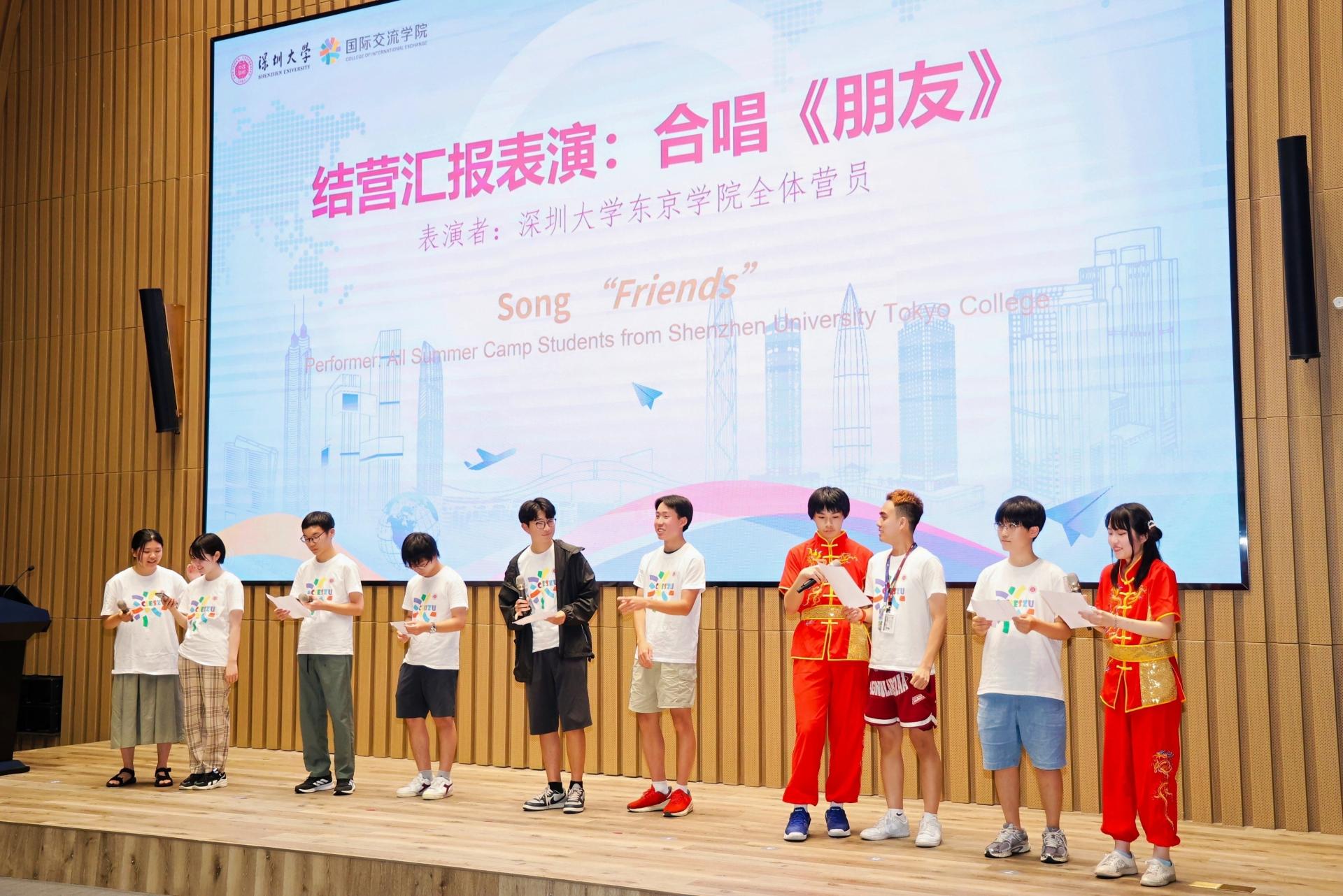 8月14日的本原講堂里,結營儀式成為本次夏令營的溫情注腳。當夏令營紀念視頻閃過這兩周的點滴——從破冰晚會的羞澀問候到香港星光大道和太平山頂的合影歡呼,來自東京學院的營員們唱起《朋友》,中文歌詞里的“一句話,一輩子” 讓全場掌聲雷動。