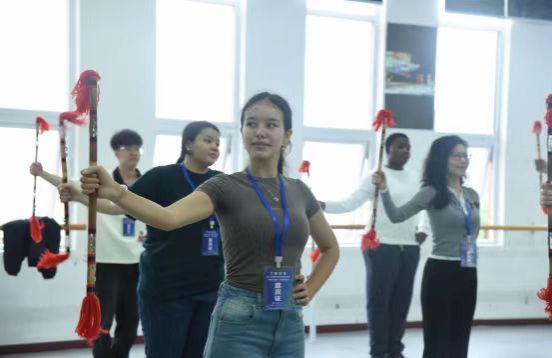 來自土庫曼斯坦的 AYNUR AGENJIYEVA 對土家族的金錢桿舞記憶猶新。那一刻,她隨著節(jié)奏起舞,聽著竹竿敲擊地面的清脆聲,仿佛融入了節(jié)日的熱鬧人群中?!拔以谡n本里學(xué)過少數(shù)民族文化,但真正跳起來的感覺完全不一樣。文化,真的要親身去體驗(yàn)?!彼χf。