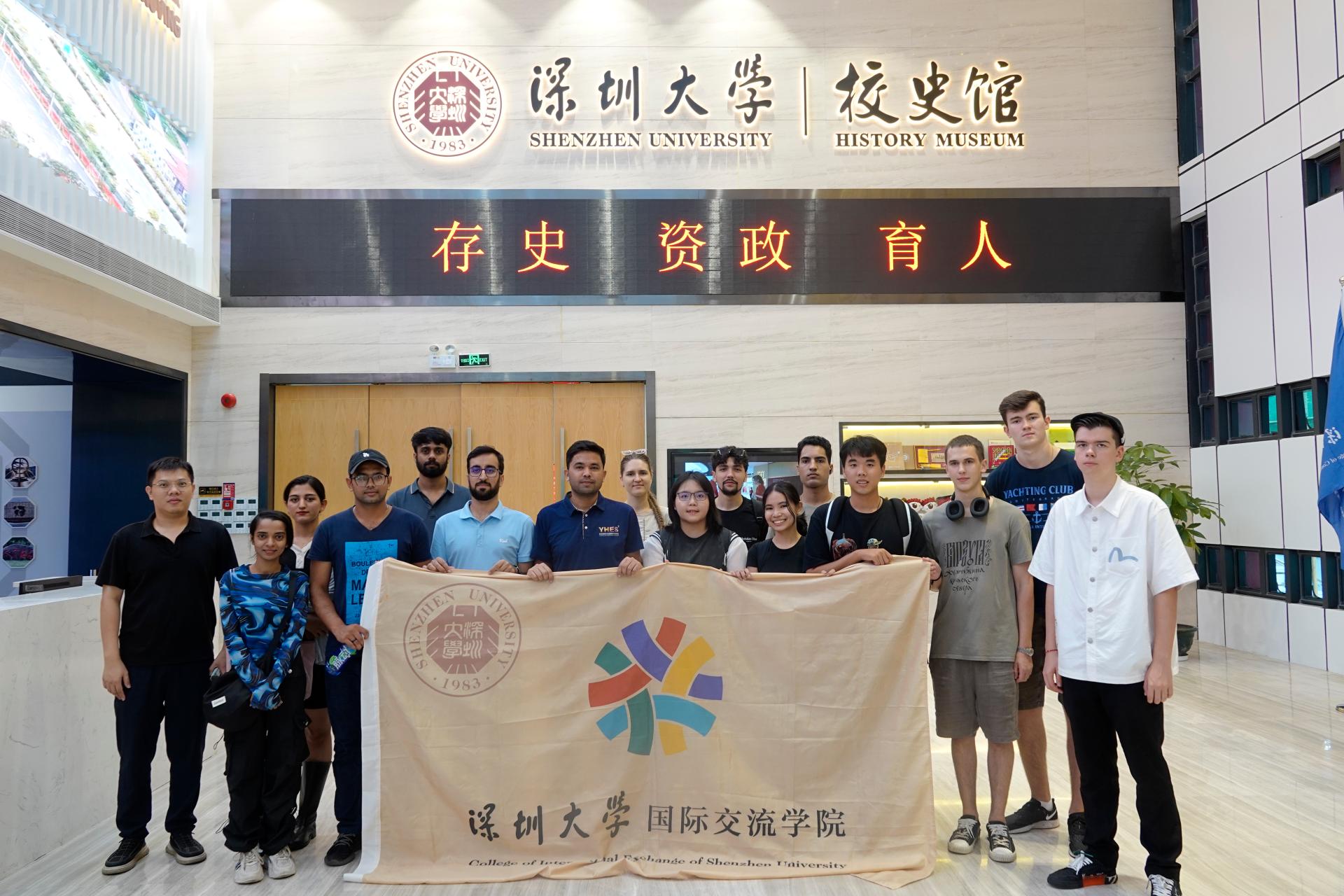 來自世界各地的國際新生在學院老師的帶領下,滿懷好奇與期待地踏上了前往校史館的旅程。深圳大學校史館,作為展示學校發展歷程、教育理念及成就的重要場所,不僅收藏了豐富的歷史文物和珍貴資料,更是學校文化傳承與創新的重要陣地。