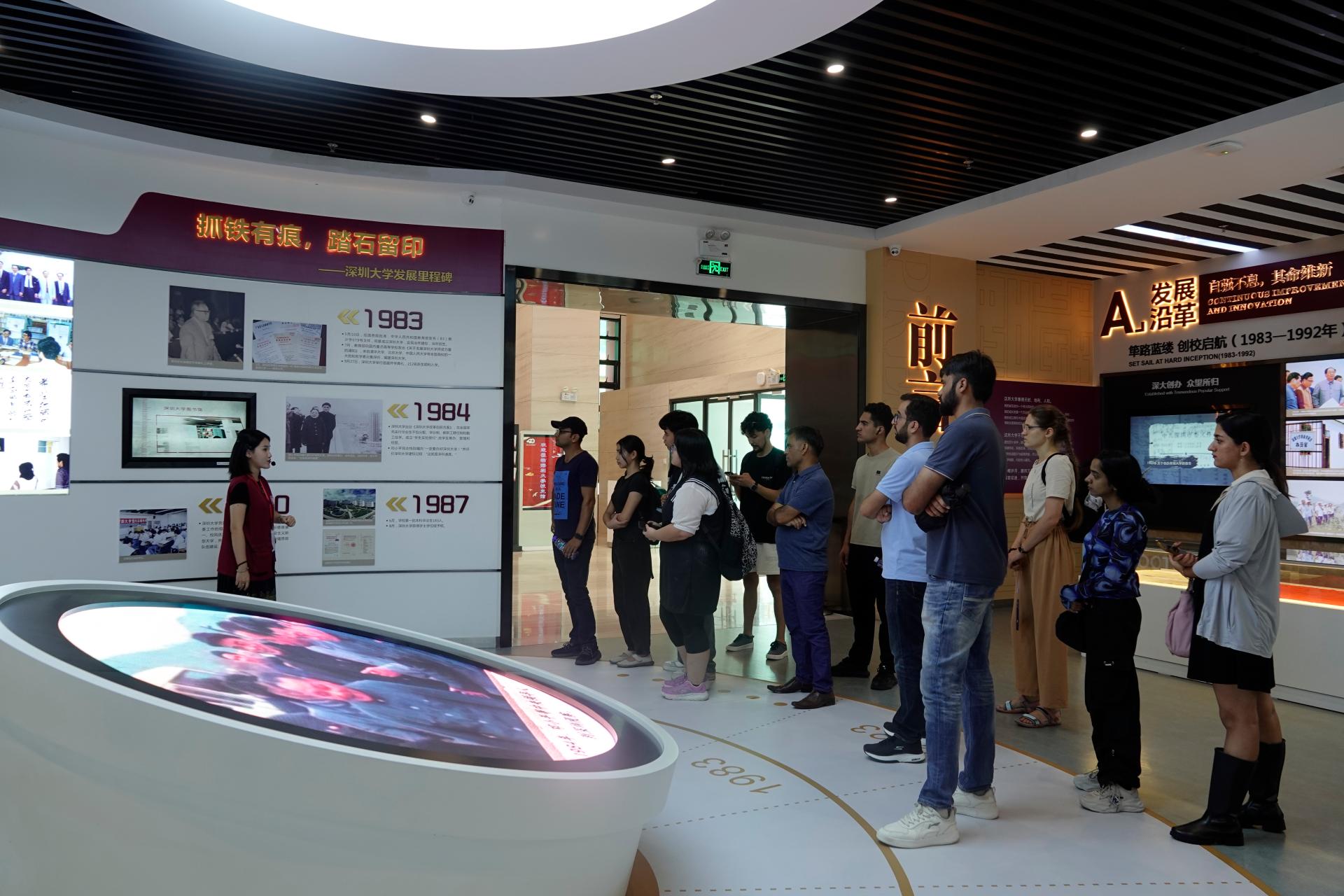 特別值得一提的是,校史館還設置了互動體驗區,通過多媒體技術和虛擬現實設備,讓國際學生們能夠身臨其境地體驗深圳大學的歷史場景和校園文化。這種新穎的學習方式極大地激發了學生們的學習興趣和探索欲望,他們紛紛表示收獲頗豐。