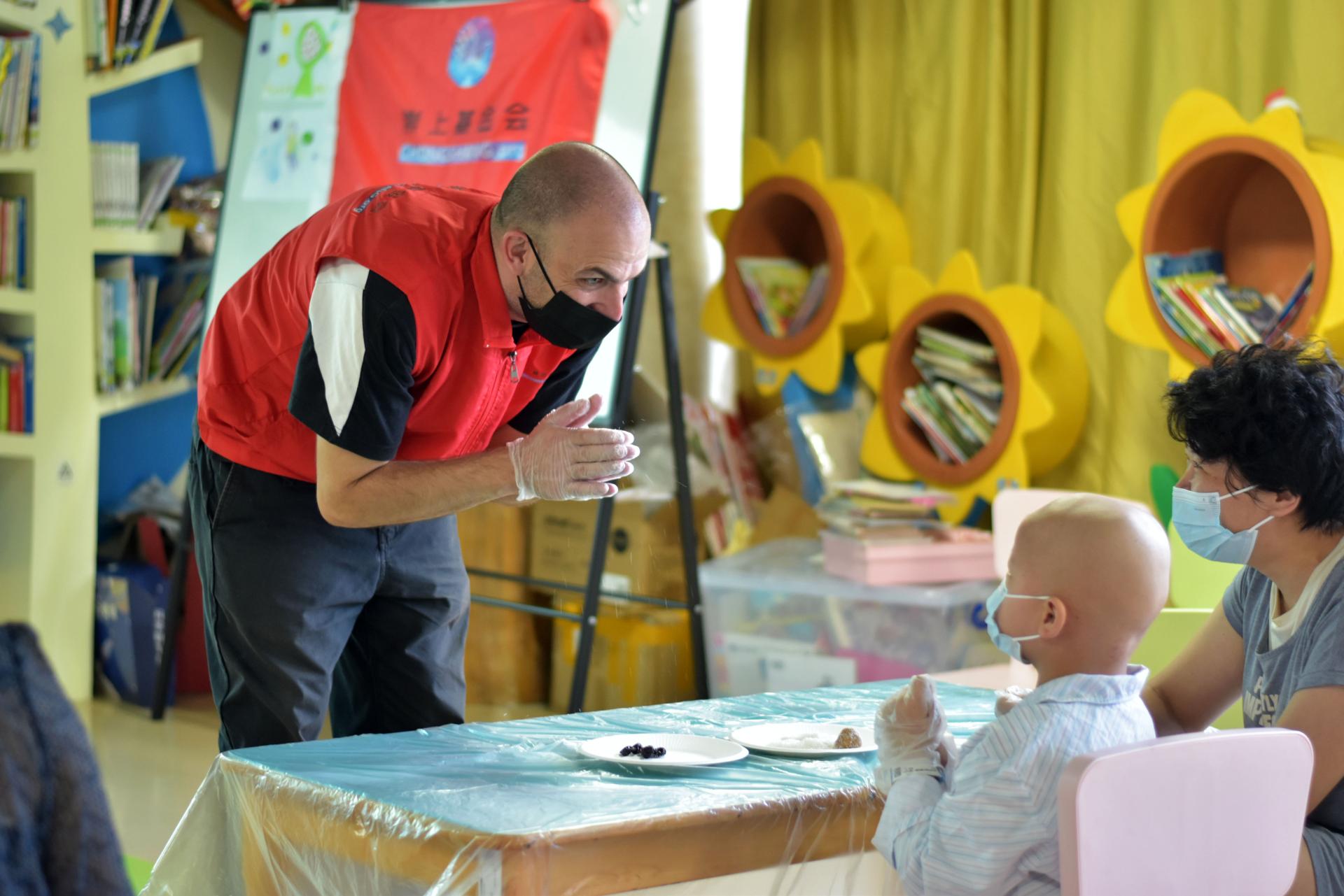 5月24日,來自塞爾維亞的RAJKOVSKIMILOS(米洛斯)來到兒骨科和血液科的病房教室,為孩子們介紹了塞爾維亞飲食文化。